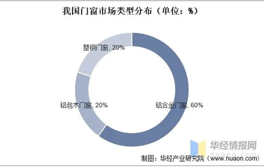 我國各類門窗中以鋁合金門窗為主,占比約六成,價格較高的鋁包木門窗約占兩成,傳統(tǒng)塑鋼門窗也占有20%的市場份額。其中,斷橋鋁合金門窗占據(jù)了我國系統(tǒng)窗行業(yè)的主流地位。